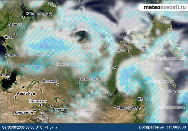 На карте справа — осадки на 31 августа (откроется в новом окне).